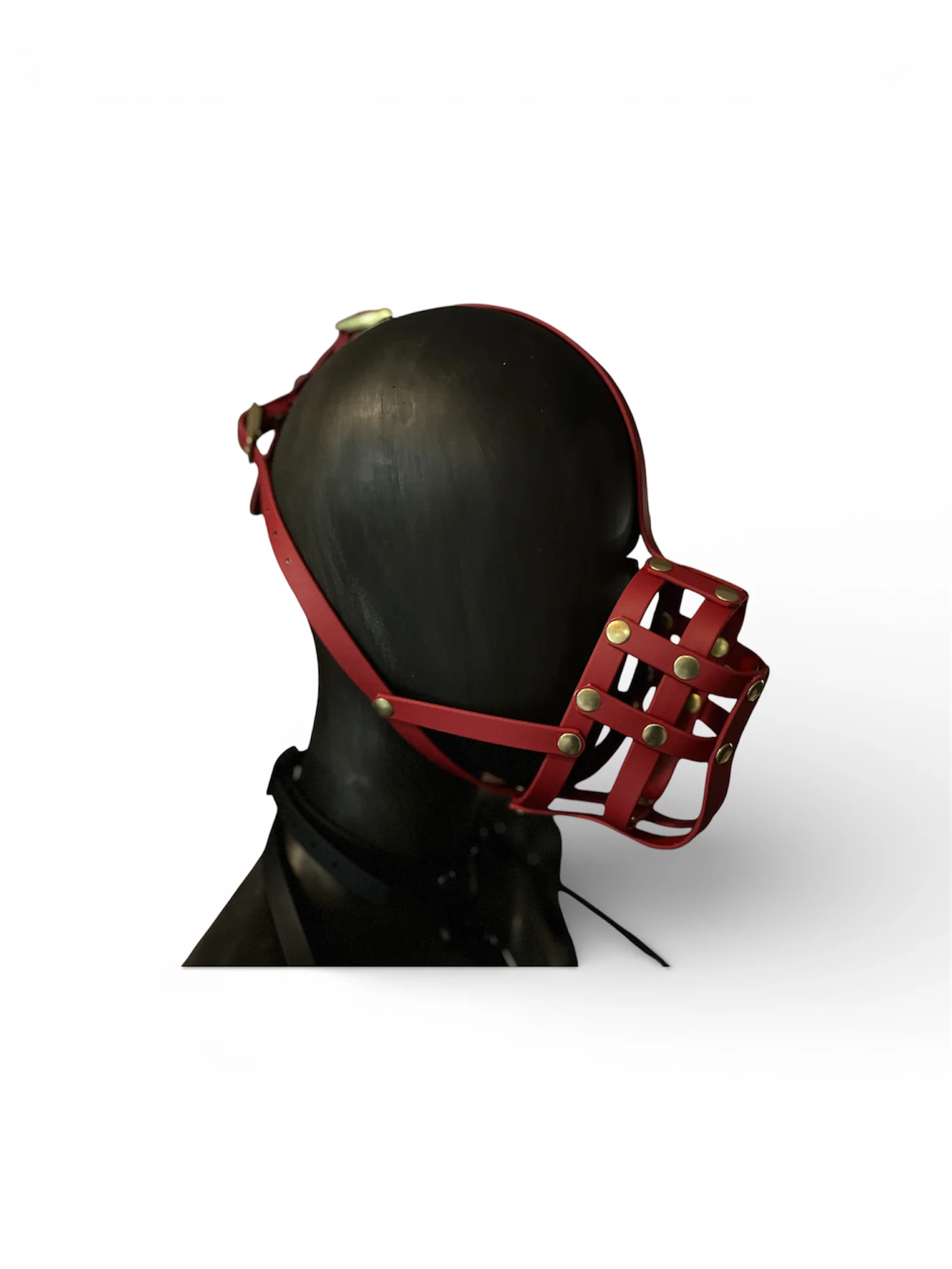 Ausdrucksstarke Mundmaske aus hochwertiger, roter BioThane mit stabilen Beschlägen. Die offene Gitterform sorgt für Atmungsaktivität, während die anatomische Passform sicheren Halt bietet. Markantes Design, langlebige Verarbeitung und starker Kontrast – ideal als BDSM-Accessoire, Fetisch-Maske oder Statement-Piece.